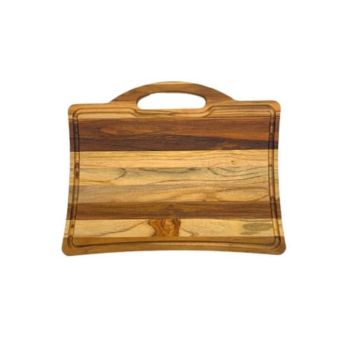 Uma tábua com design moderno e de excelente qualidade, trazendo um charme a mais na hora de cortar e servir. Alça em formato anatômico, facilitando o manuseio e armazenagem. Possui sulco arredondado para facilitar ainda mais a limpeza e higienização. Confeccionada em madeira Teca, uma madeira de reflorestamento de alta resistência, fácil secagem, peça ecologicamente correta Possui proteção antibacteriana, que inibe a proliferação de bactérias e microorganismos.
