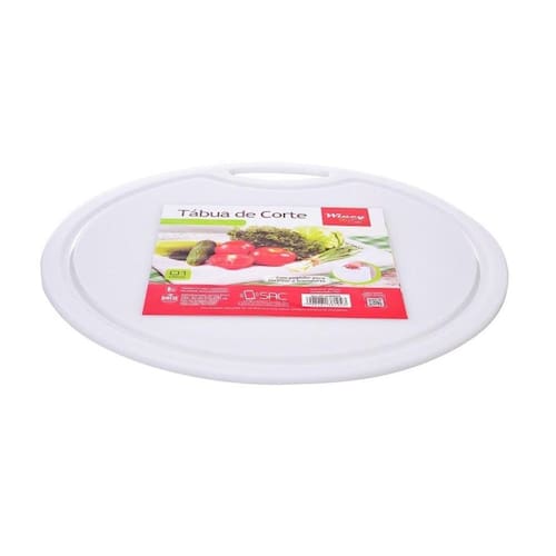 Tabua de corte c pegador rd 37 x 37 cm pt tabua de plástico para corte de alimentos branca, redonda com 37cm de diâmetro 1 cm de espessura. Seja nos encontros entre amigos e familiares, ou para refeições preparadas no dia a dia a tábua plástica redonda é um utensílio que auxilia e da maior praticidade ao momento e agilizada nas tarefas culinárias. Além de um item indispensável na cozinha, esta tábua é confeccionada em plástico é indicada por ser um material simples de ser manuseado e de fácil higienização. Marca: Não Informado Ean: 7908281381043