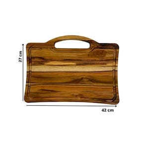 Uma tábua com design moderno e de excelente qualidade, trazendo um charme a mais na hora de cortar e servir. Alça em formato anatômico, facilitando o manuseio e armazenagem. Possui sulco arredondado para facilitar ainda mais a limpeza e higienização. Confeccionada em madeira teca, uma madeira de reflorestamento de alta resistência, fácil secagem, peça ecologicamente correta Possui proteção antibacteriana, que inibe a proliferação de bactérias e microorganismos.