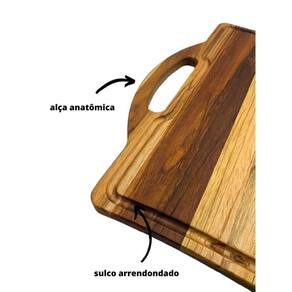 Uma tábua com design moderno e de excelente qualidade, trazendo um charme a mais na hora de cortar e servir. Alça em formato anatômico, facilitando o manuseio e armazenagem. Possui sulco arredondado para facilitar ainda mais a limpeza e higienização. Confeccionada em madeira teca, uma madeira de reflorestamento de alta resistência, fácil secagem, peça ecologicamente correta Possui proteção antibacteriana, que inibe a proliferação de bactérias e microorganismos.