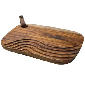 Tábua De Corte De Madeira Para Churrasco Com Alça De Couro