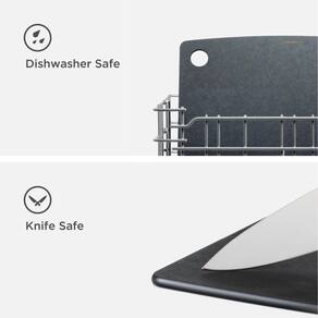- Tábua de corte de 14,5 polegadas x 28,6 cm em ardósia; feita nos EUA a partir de material composto de papel Richlite; torna a tábua de corte durável, amigável à faca, não porosa