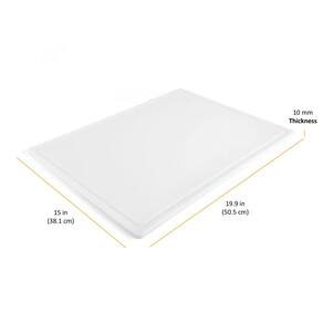 Farberware Tábua de corte de plástico extragrande com ranhura de suco de perímetro, tábua de cortar cozinha lavável na lava-louças, 38 x 50 cm, branca - Tábua de corte multiuso: medindo 35,5 cm por 50,8 cm, esta tábua de corte é a escolha ideal para fatiar perus grandes e assados, além das tarefas diárias de preparação de alimentos. - Reversível: Esta tábua de corte é reversível para dobrar a superfície de corte - Livre de BPA: esta tábua de corte é feita de plástico polipropileno livre de BPA. O material de poliéster não é absorvente, não poroso e não contém manchas. É suave com facas, evitando que suas lâminas fiquem cegas rapidamente - Ranhura profunda de suco: esta placa possui um canal ranhurado que é projetado para capturar pingos e sucos, mantendo as bancadas limpas e arrumadas. - TAMANHO GENEROSAMENTE: A prancha mede 38 x 50 cm, espessura: 1 cm