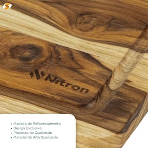 - Contém: 01 Tábua de Madeira Teca - Dimensão: 26,5cm x 40cm x 1,8cm - Largura 26,5cm - Comprimento 40cm - Altura 1,8cm- Marca: Nitron