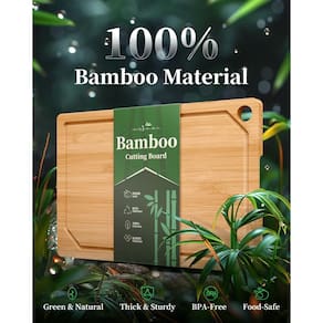 3. Feita de bambu 100% natural, a tábua de corte Kitsure é uma excelente escolha para preparação de alimentos. Não inferior à tábua de corte de açougueiro, a tábua de corte de carne Kitsure é adequada para cortar e cortar pesados. Sua superfície lisa e pré-lubrificada é excepcionalmente suave em facas, ajudando a manter suas lâminas afiadas por mais tempo.