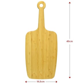 - Produzida em Bambu 100% Natural - Pode ser Utilizada como Tábua de cortes ou como Tábua de Frios - Medidas: 49cm x 1,5cm x 19,5cm Largura x Altura x Profundidade Ean: 7908192505729