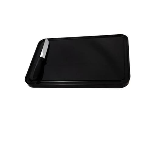 Tábua De Corte Profissional Churrascaria 20x300x450mm Preta + Faca + Avental