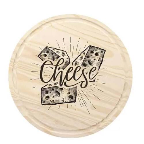Tábua de Corte Redonda Stolf em Madeira Pinus Decorativa Chesse 24cm.