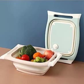 Tábua de Cozinha Dobrável 3 em 1 - Função Para Corte, Bacia e Escorredor