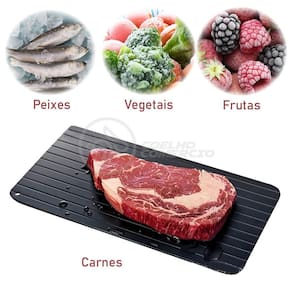 Feita com alumínio especial, essa tábua reduz drasticamente o tempo de descongelamento. O que antes levava uma hora, agora pode ser feito em apenas 25 minutos! Ideal para carnes, legumes, frutas e peixes, ela transforma sua rotina culinária com simplicidade e inovação. Além disso, com seu design elegante na cor preta, ela se adapta perfeitamente a qualquer estilo de cozinha.