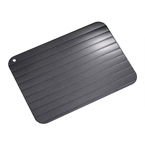 Produto para descongelar alimentos congelados em poucos minutos de 20 a 60 minutos dependendo do tamanho/espessura sem utilização de nenhum produto químico ou eletricidade. Ao invés de fornos de microondas que cozinham parcialmente a comida durante processo de descongelamento, a bandeja descongela os alimentos com segurança e rapidez. A tábua permanece fria durante o uso, não é utilizado aquecimento através de eletricidade ou água quente. Basta colocar o alimento à ser descongelado sob a tábua e mantêlos em temperatura ambiente. O descongelamento ocorre até 3 vezes mais rápido do que se o alimento fosse mantido sob outra superfície. Características do Produto: Marca: Defrost Express Tipo: Utensílios Domésticos. Tamanhos: 30,5 20,5cm Material Utilizado na Fabricação: Alumínio. Restrição: Não pode ser levado ao forno Não pode ser levado ao Microondas Conteúdo da Embalagem 01 Tábua Descongelante de Alimentos Defrost Express Tam. 30,5 20,5cm.