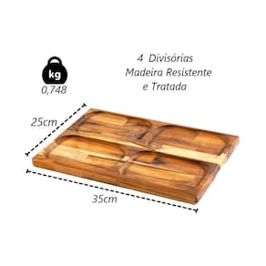 01 Tábua de Frios Petisqueira Retangular 4 Divisórias 25x35cm.