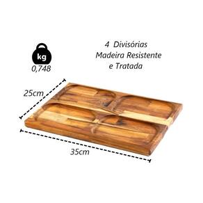 01 Tábua de Frios Petisqueira Retangular 4 Divisórias 25x35cm.
