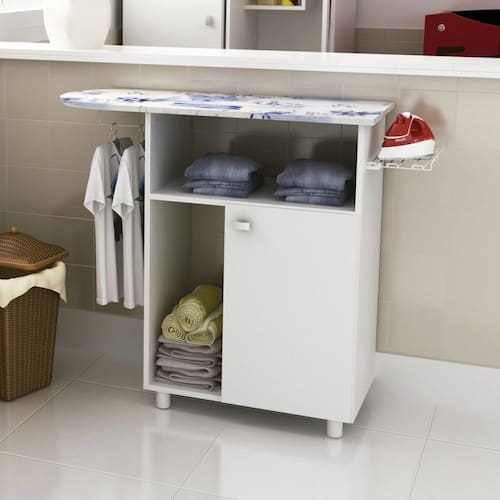 Seu ambiente mais moderno e sofisticado. A tábua de passar TP 3010 é produzida em MDP 15 mm. Possui 1 porta com dobradiças metálicas, cabideiro que facilita acomodação das roupas durante execução das tarefas. Acompanha suporte aramado descanso para ferro elétrico que garante maior segurança ao passar as roupas. O puxador é ergonômico em plástico resistente, tem 4 pés em modelo maçã para garantir maior estabilidade do produto. Acabamento em fosco com secagem em luzes UV. Tenha em casa um produto prático e funcional, seu ambiente ficará mais bonito e mais moderno. Aproveite!!