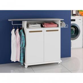 Tábua De Passar 2 Portas Floripa Arte Móveis Branco Que tal passar sua roupa com o carinho que ela merece? A tábua de passar Floripa veio para te auxiliar nesse prazeroso , além de oferecer outras praticidades também, isso porque, este armário com tábua possui suporte para ferro de passar e porta cabides; Sua superfície com tecido térmico garante a funcionalidade necessária para deixar as peças devidamente passadas; Tenha a praticidade e , da Tábua de Passar Floripa, em sua casa Altura:88 cm Largura:115 cm Profundidade: 39cm Garantia: 3 Meses Material da estrutura: MDP/MDF Acabamento: Pintura U;V de Portas: 02 de Prateleiras:03 Possui porta ferro: Sim Possui rodizio: Sim Prancha: Revestida com tecido térmico metalizado; Possui vidro: Não Necessita de montagem? Sim, sugerimos a contratação de algum experiente de sua preferência Recomendações de limpeza e manutenção: Limpar com pano umedecido, não aplicar produtos químicos; Observações: Não oferecemos de montagem, mas todos os produtos possuem manual de montagem com o passo a passo; Recomendamos contratar um de montagem; Pode existir alguma diferença de tonalidade entre a foto e o produto, devido ao tratamento de imagens e à calibração de cores do monitor.