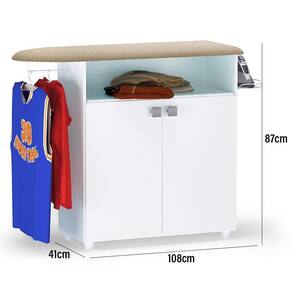 A Tábua de Passar Roupa Bianca destaca-se como uma escolha ideal para aqueles que valorizam qualidade e sofisticação. Sua estrutura é construída em MDP, com um acabamento em pintura UV. Possui um tampo estofado com espuma e revestido com tecido (a cor do tecido é e pode variar de acordo com o lote de fabricação), duas portas com dobradiças metálicas, prateleira interna resistente, suporte aramado para o ferro de passar, cabideiro para facilitar a disposição das roupas já passadas, nicho, puxadores e pés em PVC. Ideal para a área de , essa tábua proporciona praticidade nas tarefas domésticas diárias.