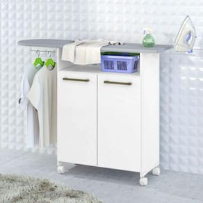 MDPA Tábua de Passar Roupa com Organizador e 2 Portas Primor da Zanzini Móveis é um produto prático e funcional. O tampo da tábua tem um tecido Especial e pode ser montado para ambos os lados: direito/esquerdo. Também possui um armário organizador com duas portas de abrir, além de rodízios, sendo dois deles com travas, permitindo mobilidade ao móvel.