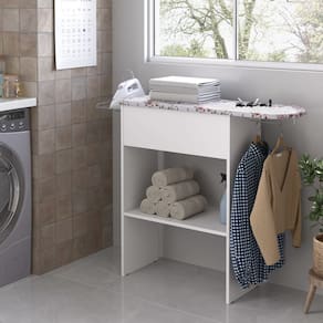 Organize sua lavanderia com muito mais praticidade e funcionalidade com a Mesa Tábua de Passar Roupa com Armário e Cabideiro. Ideal para quem busca otimizar espaço, ela alia beleza, utilidade e organização em um único móvel.? ? Características do Produto:Medidas: 105 cm (largura) x 88 cm (altura) x 30 cm (profundidade)Material: MDF/MDP de alta qualidadeTampo Estofado: Acolchoado, com tecido estampado floral, resistente ao calorCompartimento Interno: Espaço amplo para guardar ferro, roupas, produtos de limpeza e acessóriosPrateleira Inferior: Ideal para organizar toalhas, cestos ou outros itensCabideiro Metálico: Perfeito para pendurar roupas passadas e manter tudo organizadoSuporte Lateral Metálico: Para apoiar ferro de passar, cabides ou roupasDobradiças em aço: Maior durabilidade e resistênciaAcabamento: Pintura UV de alta resistênciaProduto enviado desmontado: Acompanha manual e kit de montagem???? Disponível nas cores:BrancoPretoCanela (madeirado)???? Benefícios:Design moderno e funcionalAproveitamento inteligente do espaçoProduto compacto e versátilMantém sua lavanderia sempre organizadaFácil de limpar e de montarIdeal para apartamentos, lavanderias, closets ou áreas de serviço???? Informações de Envio:Enviamos para todo o Brasil com segurança e rapidez.Produto bem embalado e protegido.???? Observações Importantes:As cores podem sofrer pequenas variações de acordo com a configuração do seu monitor.A montagem é de responsabilidade do comprador. Acompanha manual detalhado. Marca: Não Informado