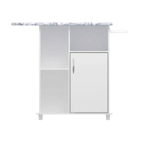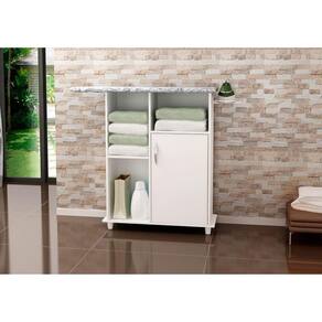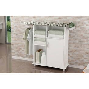 Características: Estrutura em 100 MDP Acabamento em U.V. Espaço para o ferro de passar Cabideiro Porta para armazenamento de produtos Tecido em flor preto Sistema de Montagem: Minifix 01 Porta Suporte para o ferro