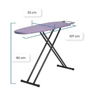 Com 10 níveis de altura ajustáveis, variando entre 55 cm e 90 cm, você pode passar suas roupas até mesmo sentado no sofá, com total conforto e eficiência. Seu tampo de 107 cm x 33 cm, feito com chapa de aço expandida e furos estrategicamente posicionados (6 cm x 3 cm), proporciona excelente ventilação para o vapor, reduzindo o risco de mofo e bactérias e otimizando seus resultados.