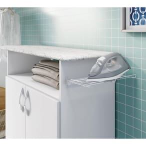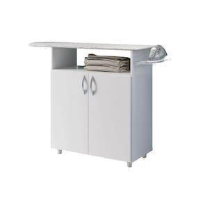 Para uma área de serviço prática e eficiente a Tábua de Passar Criativa é essencial. Ela possui 02 portas frontais e uma prateleira para uma melhor organização dos objetos. Produzida em MDP e com acabamento em Pintura UV, ela possui suporte aramado para o ferro de passar, garantindo maior segurança no manuseio, e seu diferencial está no tampo que possui acabamento com espuma e tecido.