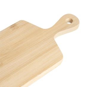 A Tábua de Servir Bambus Home Style com 38,5 cm x 10,3 cm é 100% confeccionada em bambu, com um acabamento natural lixado, possui cabo firme que facilita o manuseio.