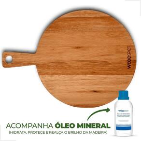 Material: madeira de eucalipto tratado. Espessura: 1,5 cm Tamanho: 40x30cm Diâmetro: 30 cm Tamanho do cabo: 10cm Peso: 900g