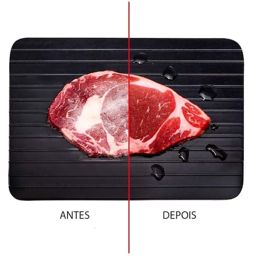Tábua Mágica Cozinha Acessório Descongela Sem Eletricidade Apresentamos a Tábua Para Descongelar Carnes E Alimentos Congelados Grande da marca Defrost Express. Esta tábua de cor preta é a solução perfeita para descongelar rapidamente suas carnes e outros alimentos congelados, sem a necessidade de eletricidade ou baterias.