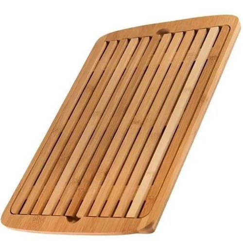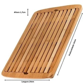 Deixe sua cozinha mais charmosa, bonita e moderna com a tábua para pães em madeira de bambu. Um objeto indispensável para a sua cozinha que facilita os cortes dos pães sem tirar o fio da lâmina. O bambu passa por um processo industrial onde é cortado em várias tiras que são lixadas, niveladas e unidas com cola atóxica, depois são torneadas no formato do produto e finalizadas com acabamento uniforme.