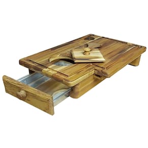 Tábua para Churrasco Carne com Gaveta e Dispenser Madeira Teca 48x32cm 101 - Dorémi Casa e Decor