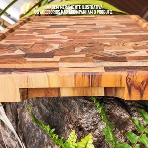 A madeira de teca oferece uma estética elegante com sua coloração natural rica e veios distintos, agregando um toque sofisticado a qualquer ambiente culinário.