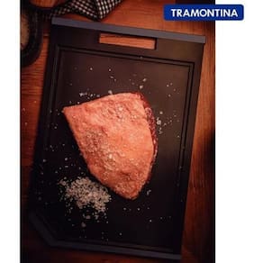 Tabua Para Corte Churrasco Black Tramontina Tábua de polipropileno com bordas emborrachadas e com proteção antimicrobiana incorporada no processo de injeção que dura por toda vida útil do produto, inibindo o crescimento de bactérias e fungos. A tábua pode ser utilizada dos dois lados Textura lisa, ideal para o corte de alimentos crus. Textura rugosa, ideal para o corte de alimentos cozidos. Com bordas emborrachadas que facilitam a fixação e manuseio. Com canaleta coletora de líquidos. Permite uso em temperaturas de até 90 C. Pode ir à máquina de lavar louças facilitando seu dia a dia.
