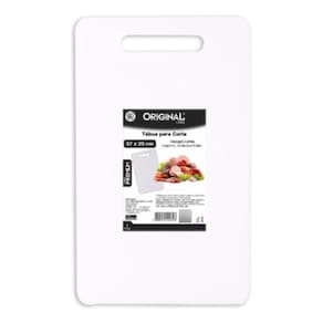 Dimensões aproximadas: 37x23cm para um amplo espaço de corte. Feita de plástico durável para uso prolongado. Cor branca elegante para adicionar um toque de sofisticação à sua cozinha. Peso aproximado: 385g, garantindo leveza e manuseio fácil. Fácil de limpar e manusear, tornando o preparo das suas refeições muito mais simples e eficiente. Produto premium que combina estilo e funcionalidade.