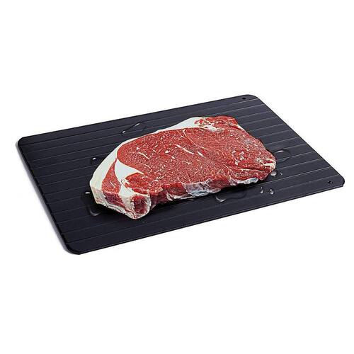 Descongela os alimentos rapidamente, bastando desembrulhar a comida congelada e colocar na tábua descongelante Esta tábua de descongelamento pode ser utilizada com todos os alimentos congelados, incluindo: frango, bife, costela de porco, frutas e outros Material: alumínio que é um condutor de calor superior As ranhuras da tábua aceleram a emissão de ar refrigerado e drenam a água fria do alimento congelado Não utiliza eletricidade, nem pilhas ou produtos químicos Descongelamento natural: não altera as características e o sabor dos alimentos Antiaderente, é muito fácil de lavar e conservar Dimensões da tábua: 35,10 x 1,0 x 19,7 cm prof x alt x larg Cor: preta Marca: Não Informado Ean: 7897712014134
