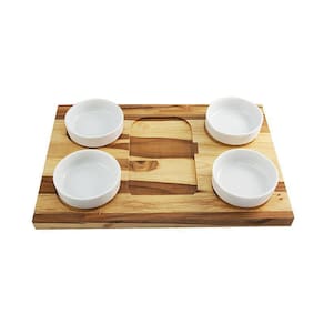 Tábua para petisco petisqueira quadrada com 4 cumbucas primewood