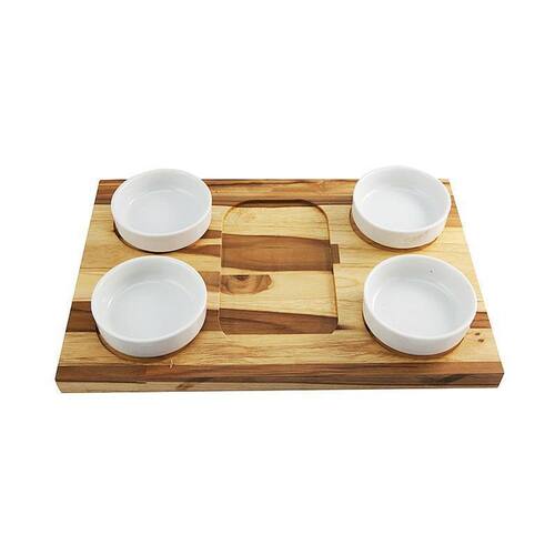 Conteúdo da embalagem: - 01 petisqueira de madeira - 04 cumbucas de cerâmica Ean: 7894509262037