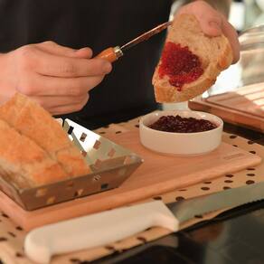 Detalhes do produto: - Composto por três peças, sendo: uma tábua, uma molheira e uma cesta para servir batata frita ou petiscos; - A tábua possui rebaixos para encaixar a molheira e o cesto, evitando acidentes; - Feita em madeira de eucalipto reflorestada.