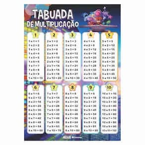 Com um design claro e colorido, este quadro tamanho A4 exibe a tabuada de 0 a 10, tornando o aprendizado dos fundamentos da multiplicação simples e divertido.