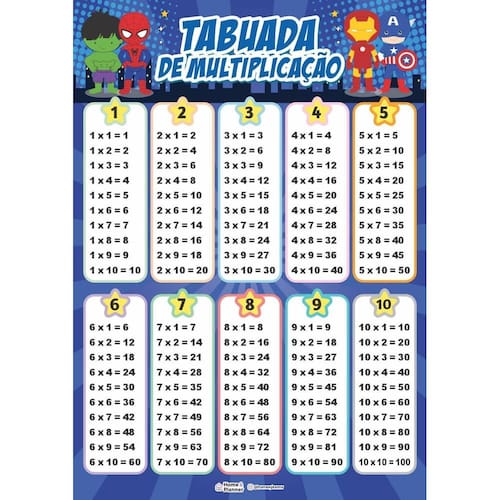 Tabuada De Multiplicação - Heróis - Home E Planner