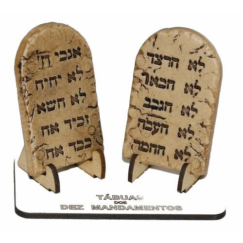 Tábuas Da Lei Dez Mandamentos Base Madeira Mdf Pequena