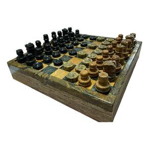 A pedra-sabão, conhecida por sua durabilidade e toque suave, dá vida a este conjunto de xadrez, garantindo que cada partida seja não apenas um desafio mental, mas também uma experiência estética. A textura única e as veias naturais da pedra-sabão tornam cada conjunto exclusivo, com seu próprio conjunto de cores e padrões.