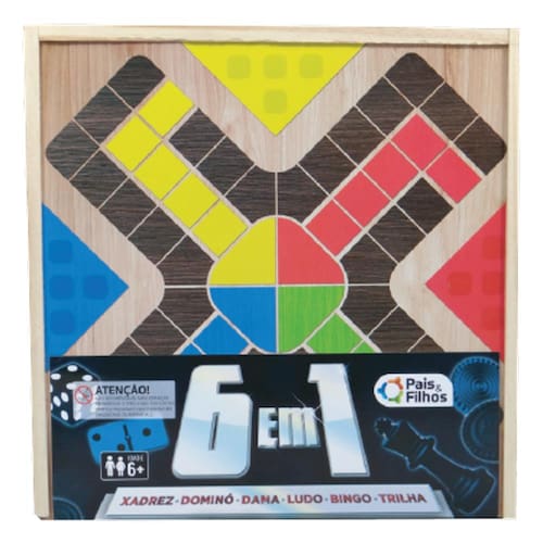 Jogo 6 em 1 - Caixa em Madeira - Pais e Filhos