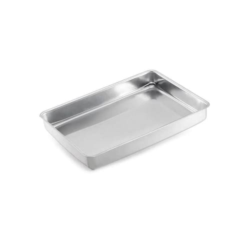 Tabuleiro de alumínio retangular baixo com material reforçado. Ideal para bolos, pizzas, tortas e confeitarias em geral.