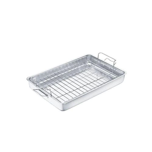 Tabuleiro de alumínio reforçado tamanho retangular de 38cm x 27cm, com grelha aramado de aço. Ideal para grelhar alimentos e afins.