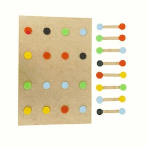 - 1 Tabuleiro de 31x21cm feito em MDF Cru com pontos de acrílicos coloridos e 8 unidades de pares de pontos feitos em MDF e acrílico colorido. Ean: 2960005591263