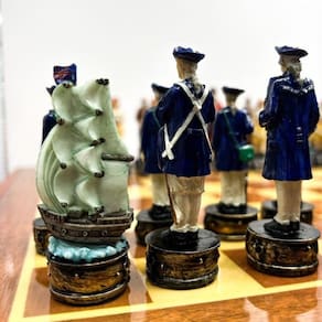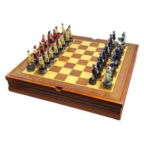 Prepare-se para a batalha e defenda seu reino com este incrível e inspirador tabuleiro de xadrez com peças inspiradas na história. Este jogo xadrez é uma verdadeira obra de arte e muito cobiçado pela sua construção impecável e sua elegância visual.