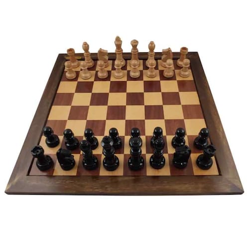 Jogo de Xadrez com Tabuleiro Luxo e Peças em Madeira Nobre – Arte e Estratégia em Cada Peça Descubra a fusão perfeita de arte, funcionalidade e paixão deste Jogo de Xadrez.Este conjunto oficial de xadrez é composto por um belíssimo tabuleiro em madeira de lei maciça, com casas marchetadas cuidadosamente encaixadas, formando o contraste perfeito entre tons naturais claros e escuros.Com suas peças cuidadosamente esculpidas, protegidas com feltro para preservar a integridade do tabuleiro marchetado, este jogo promete não apenas desafios táticos, mas uma experiência visual incomparável.