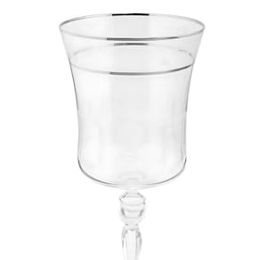 Taça de Água Grace em Cristal com Friso Platino 300ml - Elegância e Refinamento à Mesa A Taça de Água Grace é perfeita para compor uma mesa sofisticada com equilíbrio entre beleza e funcionalidade. Com capacidade de 300ml, é ideal para servir água, sucos ou outras bebidas leves com elegância. Produzida em cristal de alta qualidade, proporciona brilho, transparência e resistência. O friso platino ao redor da borda acrescenta um toque nobre, valorizando ainda mais sua composição de mesa, seja em ocasiões especiais ou no dia a dia. Destaques do produto: Material nobre: Cristal resistente com excelente brilho e transparência. Friso em platino: Detalhe sofisticado que traz requinte à peça. Capacidade ideal: 300ml, perfeita para água e outras bebidas leves. Design clássico: Taça com formato confortável e elegante. Versatilidade: Uso doméstico ou , em eventos e jantares especiais. Especificações: Linha: Grace Material: Cristal Capacidade: 300ml Altura: Aproximadamente 18,5 cm Diâmetro da boca: Aproximadamente 8 cm Acabamento: Friso platino Cor: Transparente com detalhe platino