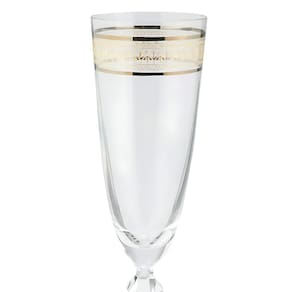 Cristal de alta qualidade: Brilho, transparência e durabilidade. Friso dourado decorativo: Toque refinado e elegante à peça. Capacidade ideal: 200ml, perfeita para espumantes e champanhes. Design sofisticado: Formato ergonômico e clássico. Versátil: Ideal para uso individual ou composição de kits.