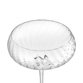 Com design canelado curvo e bojo levemente abaulado na cor incolor o destque fica para sensação de movimento causado pelo canelado, semelhante ao suspiro.